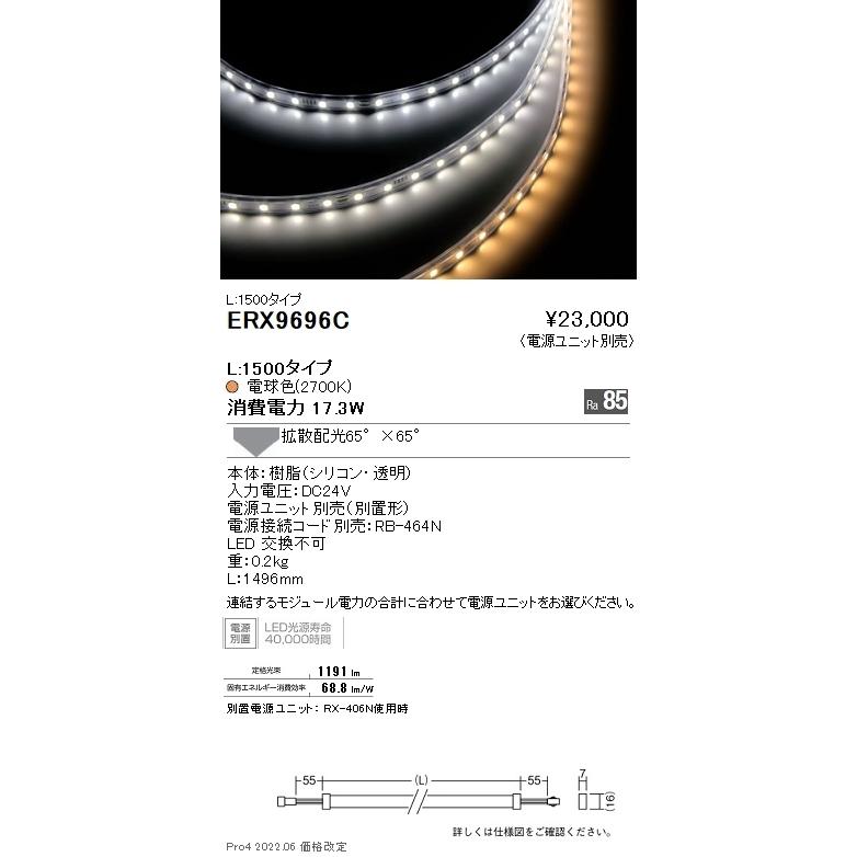 ERX9696C 間接照明 LEDZ Flexible Light フレキシブルテープライト L1500タイプ 電源別売 65°×65° 拡散配光 電球色2700K 無線調光対応 遠藤照明