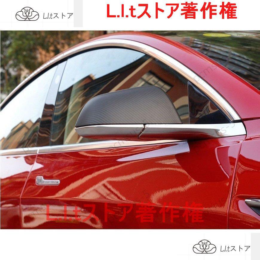 送料無料 サイド ドア ミラーカバー【テスラ モデル3】専用 ガーニッシュ 光沢 高級 リアルカーボン 2PCS 外装 UV加工 パーツ 2色