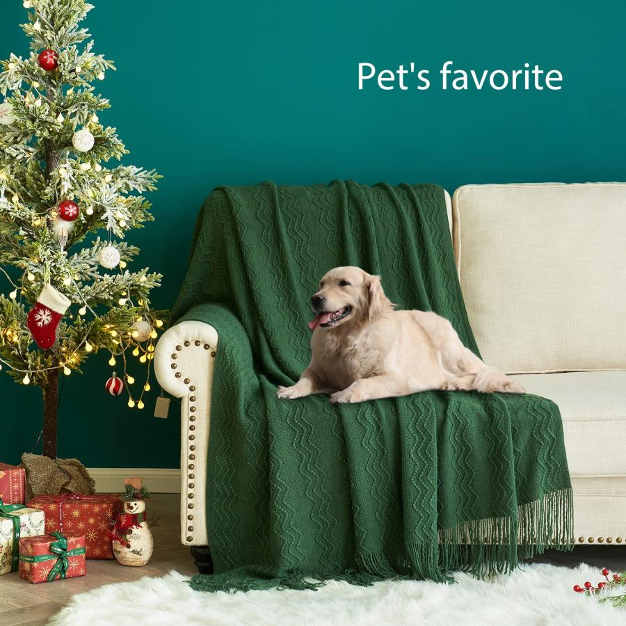 MIULEE ダークグリーン ニットスローブランケット カウチ用 テクスチャードニットブランケット タッセル付き 心地良い織物 ボ 並行輸入品