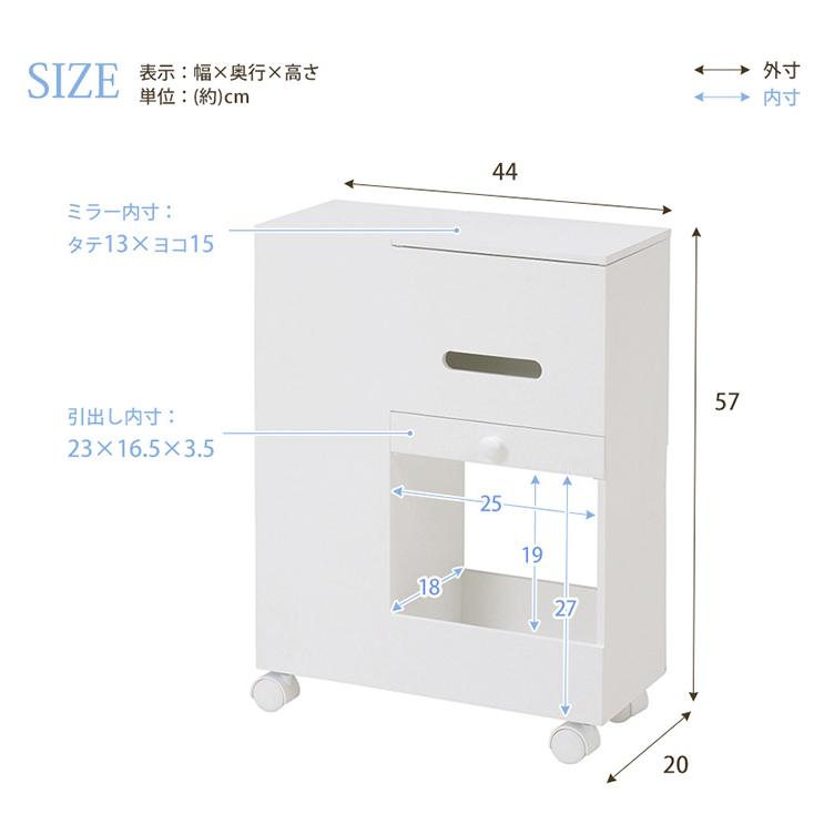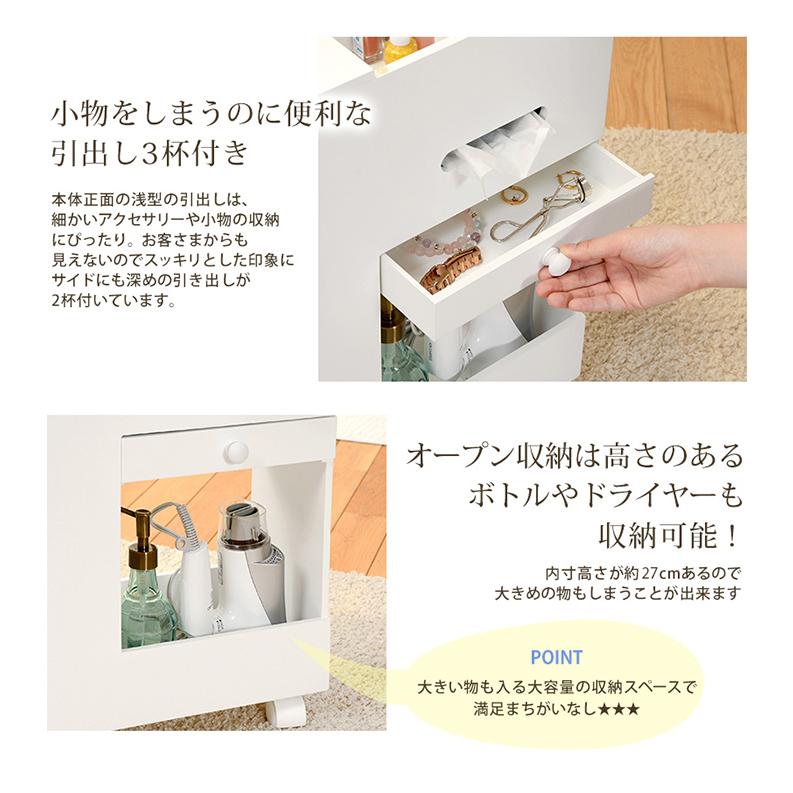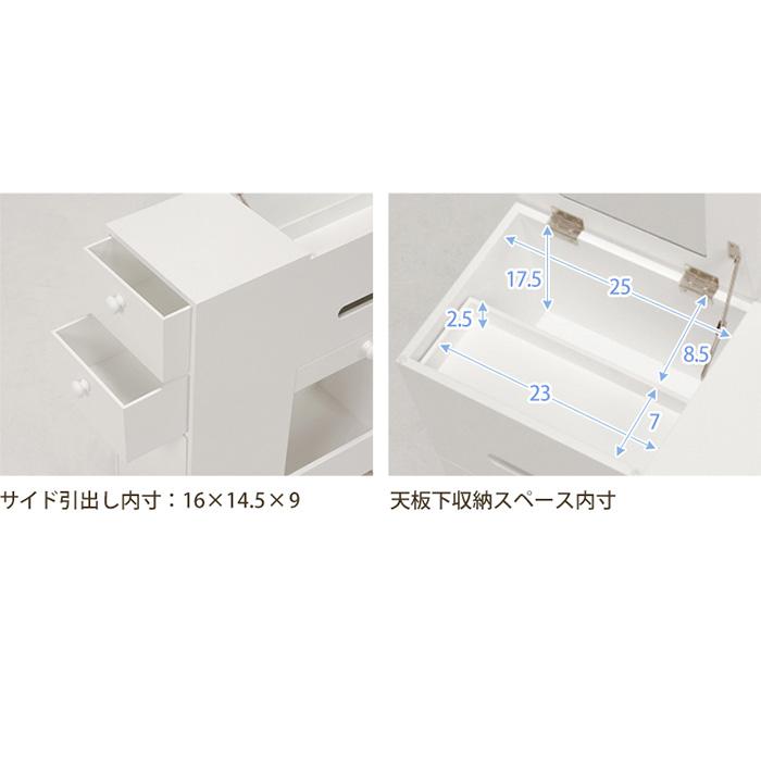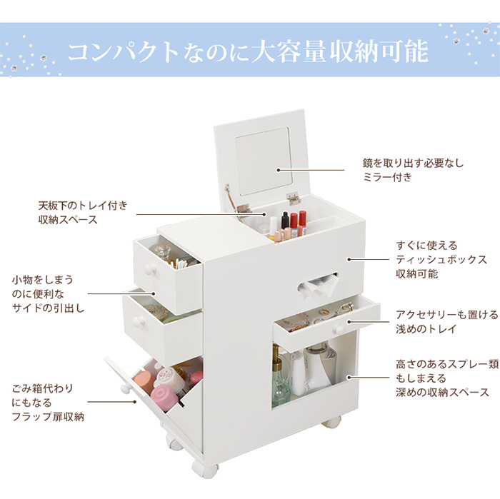 ドレッサー おしゃれ コスメワゴン ホワイト MUD-6648WH ミラー付 スリム 大容量収納 引出し付 キャスター付 ティッシュ収納可 ダストボックス付 メイク用品