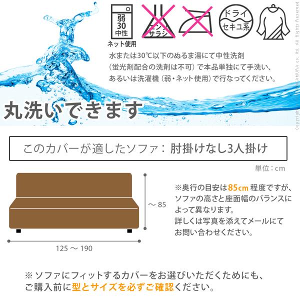 ※メーカー直送品のため、ご注文後の「お客様都合(色違い、サイズ違いなどの注文間違いなどを含む)」によるキャンセルは固くお断りいたします。ご注文の際は、カラー、サイズ、送料等をよくご確認ください。※複数同時購入の場合、個別に既定の送料がかかります。同時発送による送料割引などはございません。(オプション品や軽量物でも1個ごとに既定の送料が掛かります)※商品不良時などは出荷元メーカー手配により、交換対応をいたします。※メーカー直送のためはお受けできません。※沖縄・一部離島は別途送料がかかります。お見積もりいたしますのでお問い合わせ下さい。≪アームなし・3人掛け用≫商品について:どんな形にも合わせやすい!イタリア製のソファカバー。ストレッチ素材です。適合ソファ:座面幅125〜190cm・高さ85cmまで※奥行の目安は85cm程度ですが、ソファの高さと座面幅のバランスによって異なります。カラー:アイボリー・ブラウン・グリーン・イエロー・チョコレートブラウン・ワイン・ブルー・オレンジ材質:綿55%・ポリエステル25%・アクリル15%・レーヨン5%株式会社ナカムラ("}