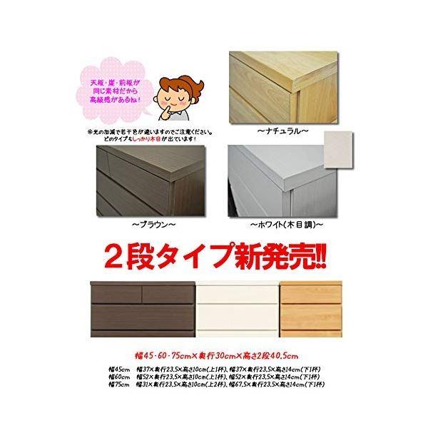 頑丈薄型チェスト/収納棚〔2段 幅45cm ブラウン木目調〕 奥行30cm 日本製 『ウスピッタ』〔完成品〕