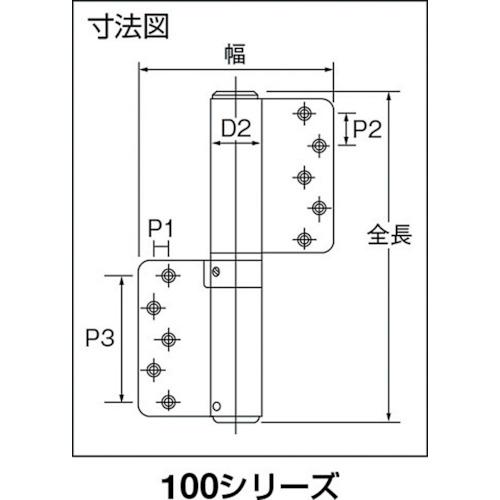 [特長]●強弱2つのスプリングとその独自の切り替え機構の採用によりドアを確実に閉じ切るとともにドアを軽く開けることができることを実現させました。(140、240タイプを除く)●枠側羽根とドア側羽根は分離できる旗蝶番型式なので現場取り付け、工場取り付けを選択できます。[仕様]●全長(mm):198●幅(mm):120●厚さ(mm):4●ねじ穴数:10●開き:左用●D2(mm):32●表面処理:メラミン焼き付け塗装仕上げ●取付方法:サラねじ(M6・別売)●JIS A1510-3規格品●適用ドア質量:60kg以下●適用ドア寸法:(幅)900mm×(高さ)2100mm×(厚み)30mm以下[材質/仕上]●スチール[セット内容/付属品]●上下×各1枚