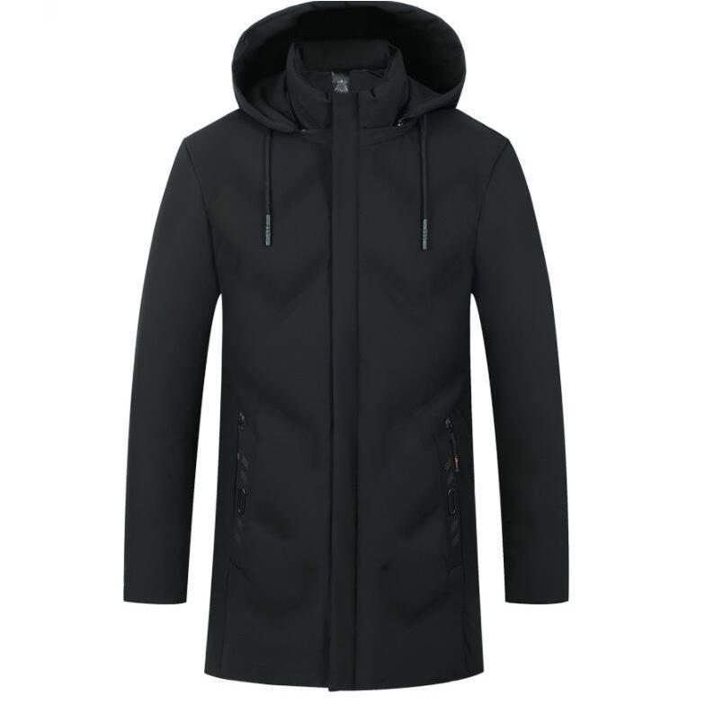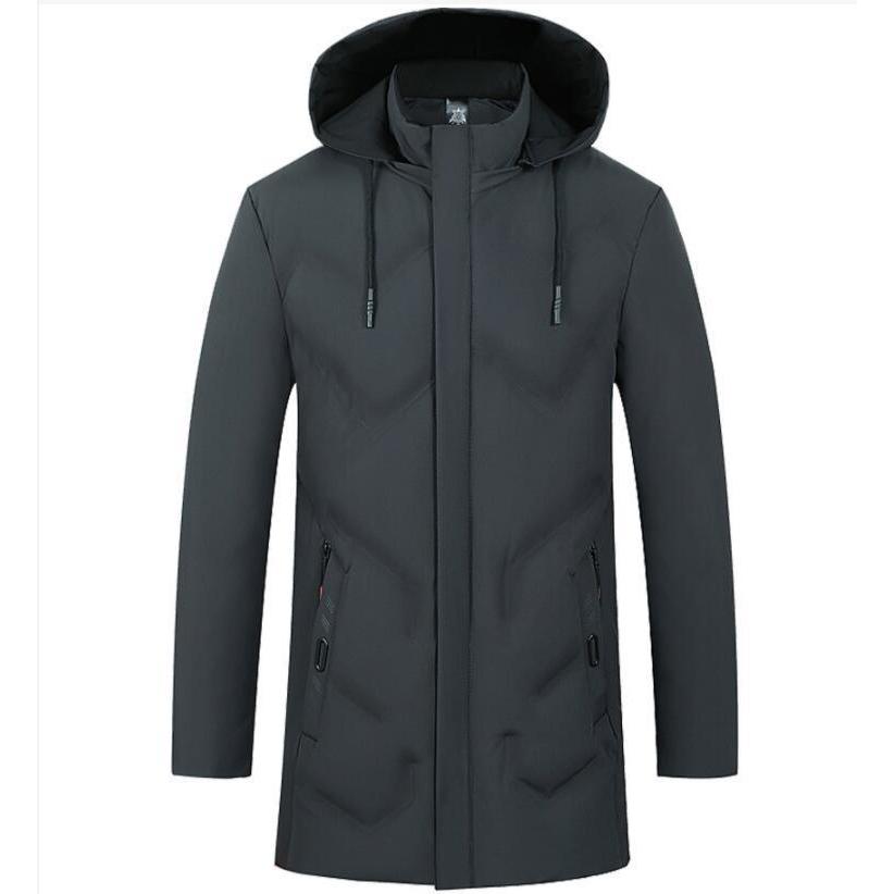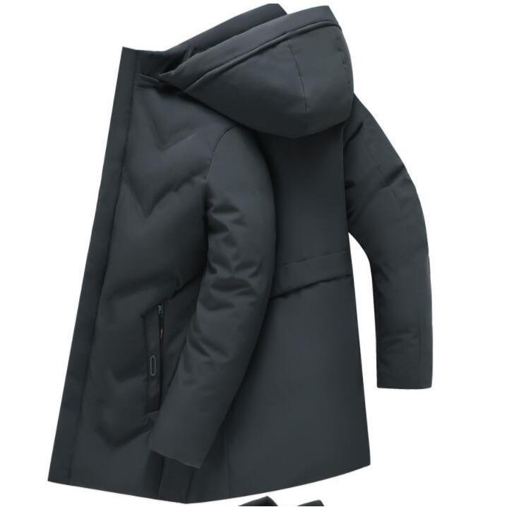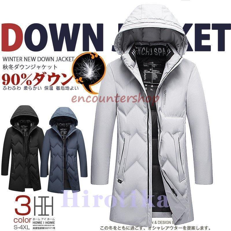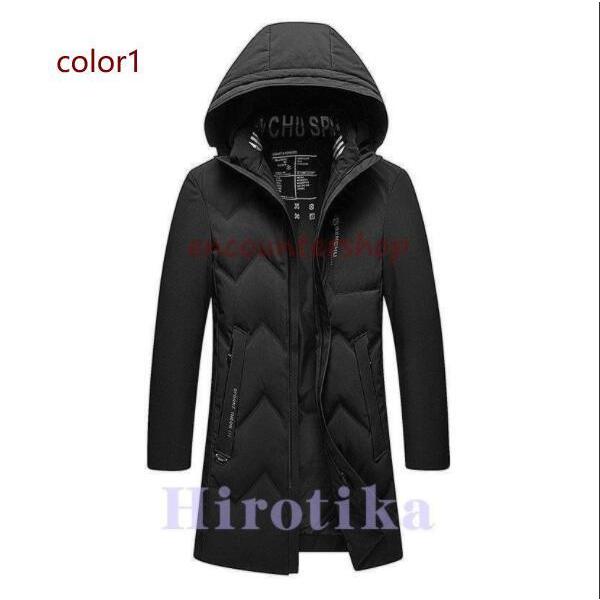 ダウンコート メンズ 無地 ミドル丈 フード付き 保温 防寒 冬物 暖かい ビジネスコート ダウンジャケット シンプル