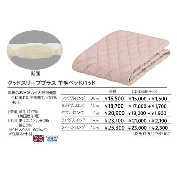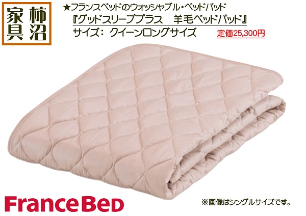 ベッドパッド 羊毛 クイーンロングサイズ(QL) フランスベッド ウォッシャブル グッドスリーププラス羊毛ベッドパッド 英国産羊毛100% 170×205cm