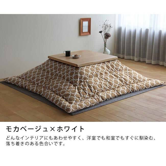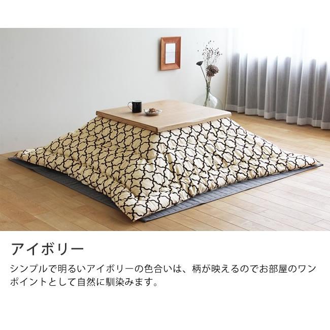 ふんわり柔らかな中綿をたっぷり詰めた厚掛けタイプ。こたつの中をぽかぽか暖めて優しく包み込んでくれます。