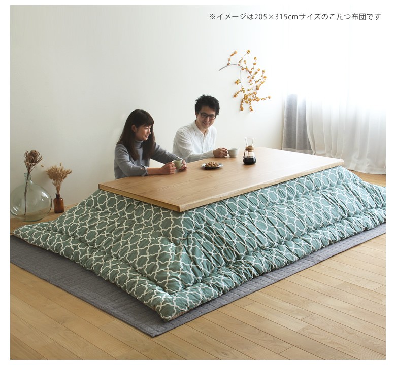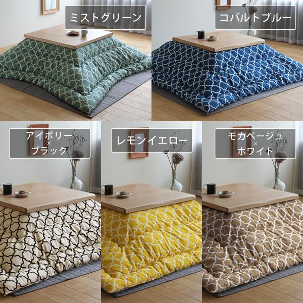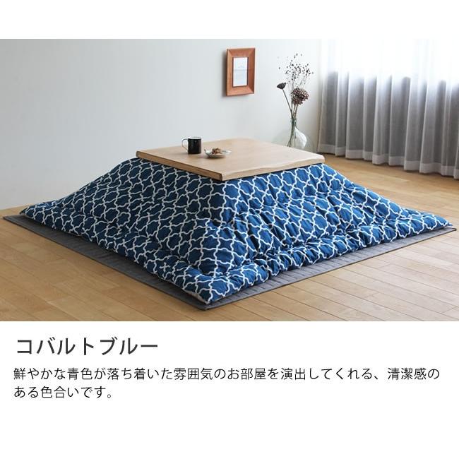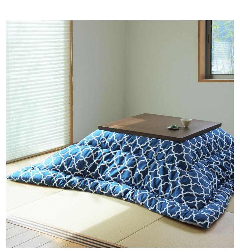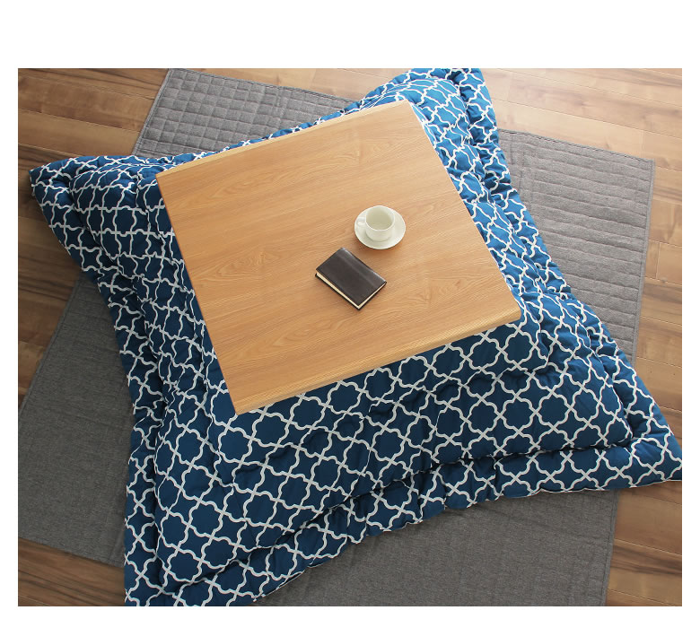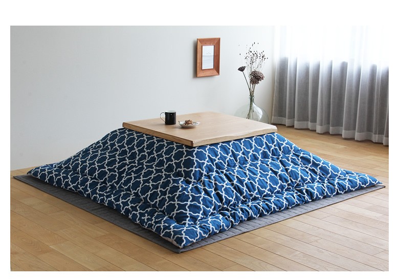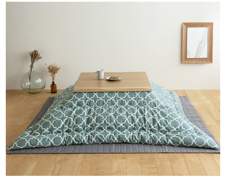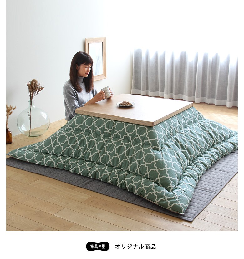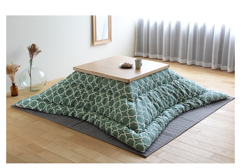 ナチュラル色のこたつにも、ブラウン色のこたつにもあわせやすい、爽やかさを感じる色合い。当店イチオシのカラーです!