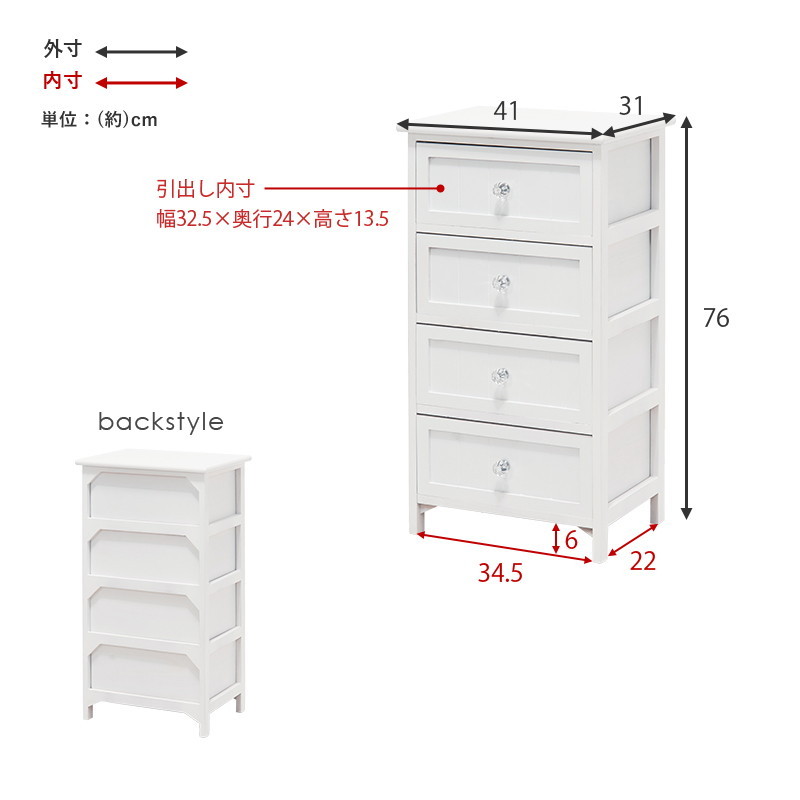 チェスト タンス 木製 収納棚 4段 幅41cm 完成品 おしゃれ ホワイト 白い家具 収納家具