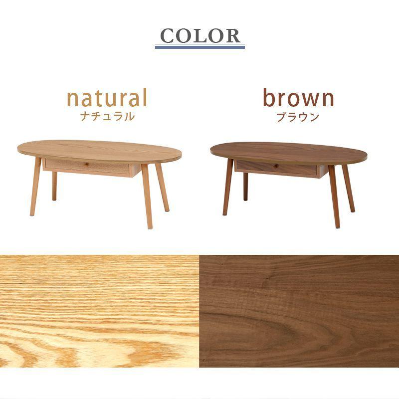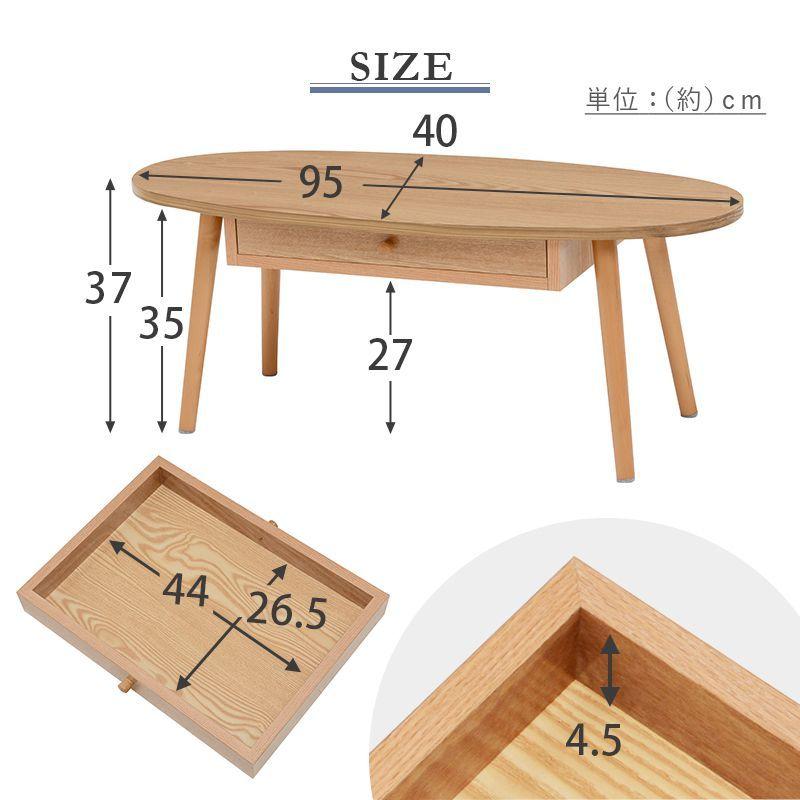 リビングテーブル 95cm 丸型・楕円 おしゃれ 引き出し付き 木製