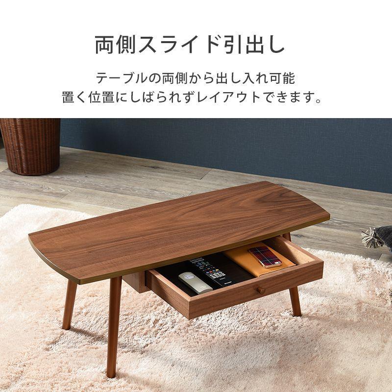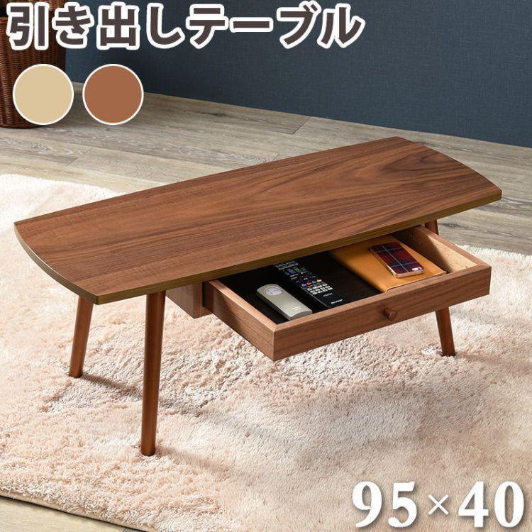 リビングテーブル おしゃれ 長方形 幅95 引き出し付き 木製 ブラウン
