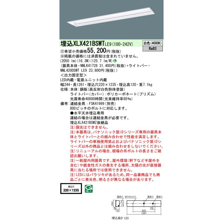 受注品 XLX421BSWTLE9 パナソニック iDシリーズ セット品内訳( NNLK41728 NNL4200SWTLE9 ) 学校 学習 塾 黒板 黒板灯 法人様限定販売