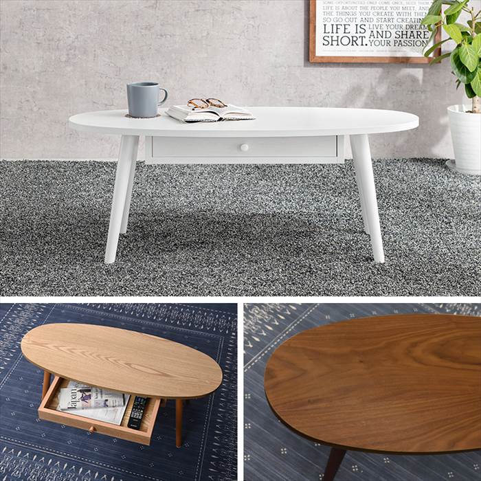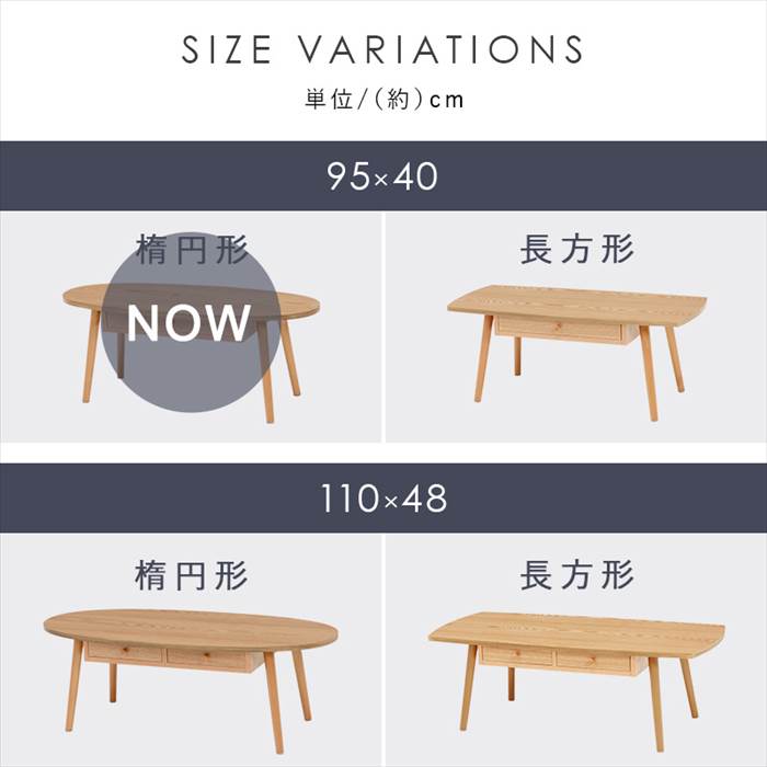 センターテーブル 引き出し 通販 MT-6350 ローテーブル テーブル 机 引き出し付き 収納付き 楕円 幅95 木製 天然木 おしゃれ シンプル 一人暮らし