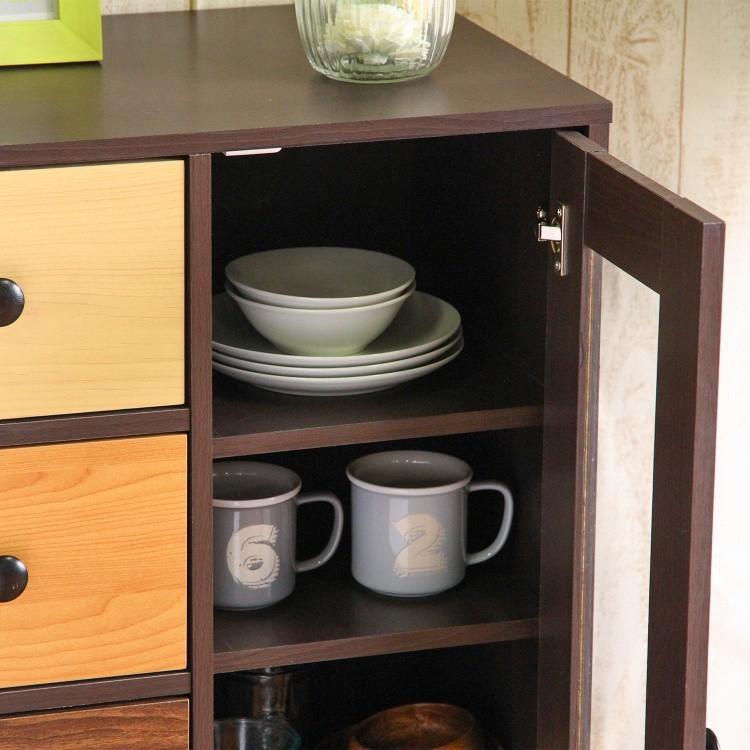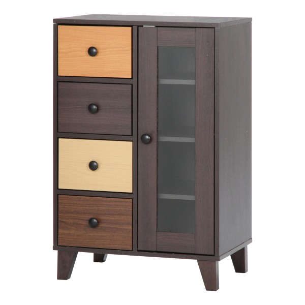ウッドグラデーション キャビネット 引き出し 4段 脚付 カラフル 飾り棚 デザイン ボード チェスト カップボード ラック 収納 送料無料
