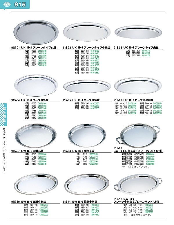 915-12 SW 18-8 プレーン小判盆 (プレーンハンドル付) 22吋 128032310