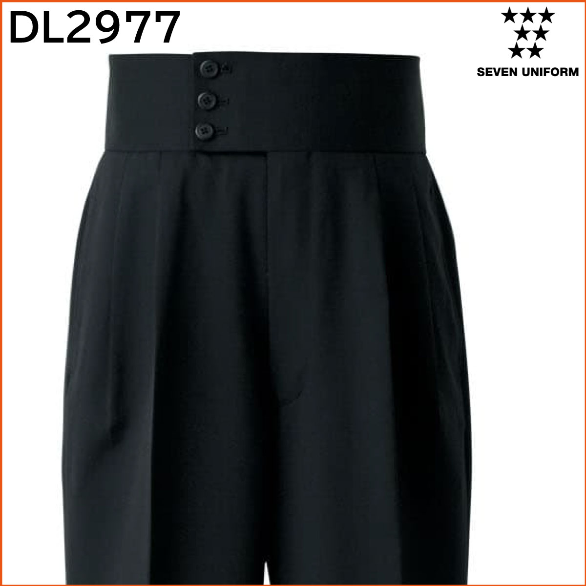 DL2977 ハイウエストツータックスラックス(男性用)ハイウエストツータックゆったりめのシルエット【MATERIAL】■素材:ツイル■混率:毛70%・ポリエステル30%【仕様】■フロント前カン・ボタン留め■持出しボタン付■膝裏付【特長】タキシード(DD2706-9,DD2705-9)と合わせるためのパンツです。ハイウエストツータックゆったりめのシルエット、制電糸入り。同デザインで素材違いのDL2968-9はこの商品の廉価版です。【COLOR】■9.ブラック"}