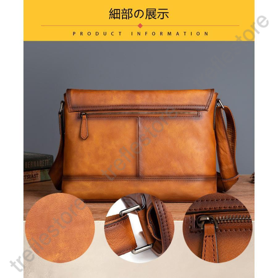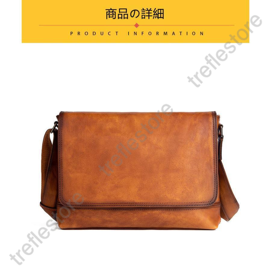 職人手作りヌメ革 メンズバッグ ショルダーバッグ メッセンジャーバック 斜めがけ 肩掛け レザー ビジネスバッグ おしゃれ 大容量 3色 通勤