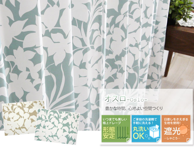 カーテン ドレープカーテン 遮光2級 葉柄 AH542オスロ サイズオーダー巾201〜250cm×丈201〜260cm 1枚 OKC5