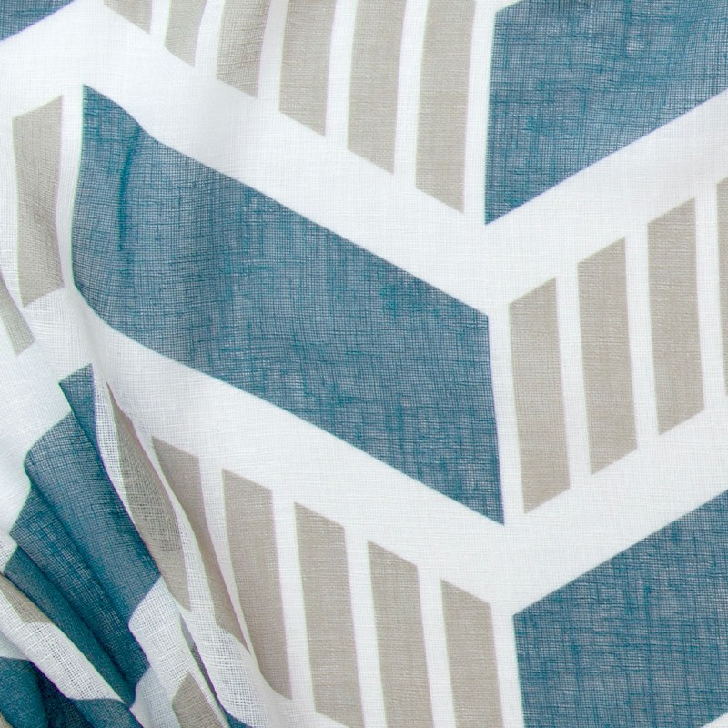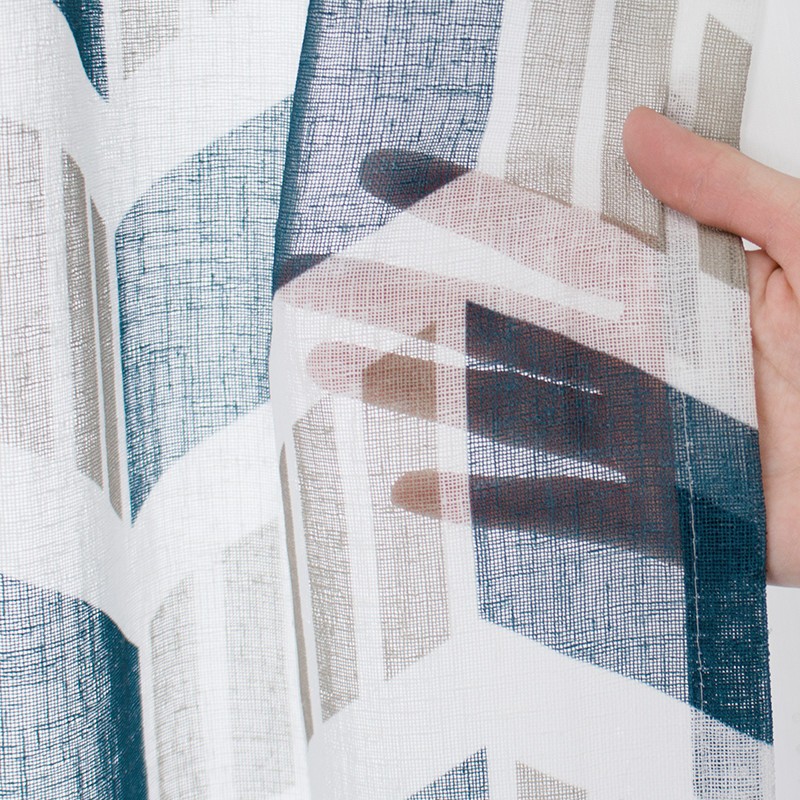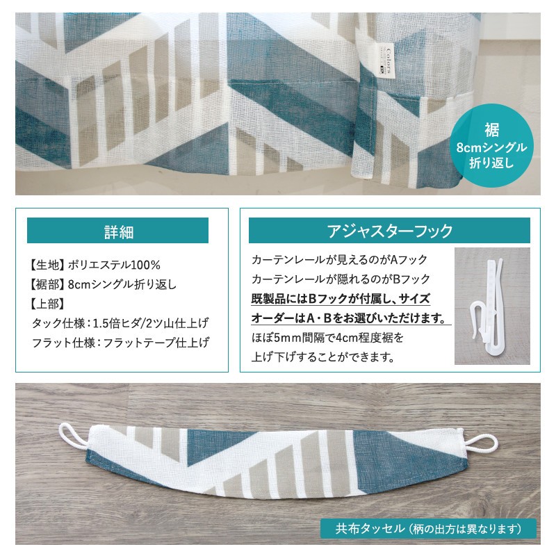 落ち着いたブルーグリーンとゴールドベージュの大人カラーの組み合わせが北欧インテリアに合います。また、リネンライクな軽やかさをポリエステルで表現しているのでリアルなリネンよりもお手入れしやすく、厚地カーテンと合わせてレースカーテンとしてもお使いいただけます。