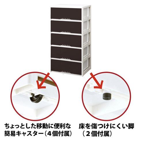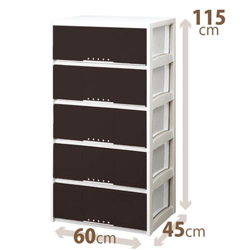 ★5000円以上で送料無料★衣類収納からコスメティック、メディアの整理やステーショナリー、子供部屋にも人気な収納用品。●カラー:ブラウン。●最大外寸(約):幅60×奥行45×高さ114.5cm。●有効内寸(約):幅52.5×奥行40.5×高さ19.5cm(×5段)。●付属品:簡易キャスター4個、脚2個。●材質:【天板・引出し・脚・キャスター】ポリプロピレン、【前パネル】スチロール樹脂、【補強板】アルミ。●製造:日本製。●リビングでもゆったり収納。幅60?、奥行たっぷり45cmタイプ。●天板にアルミ補強板が入っているので、丈夫にしっかり使える。●ちょっとした小物を飾れます。。