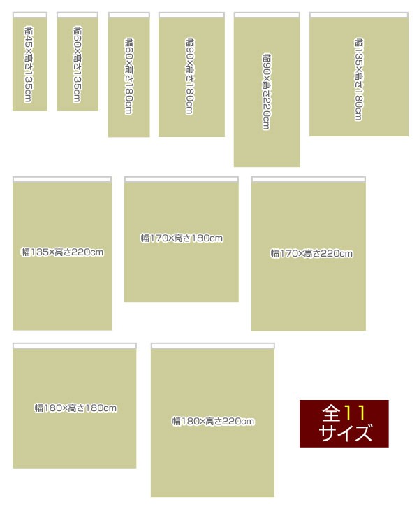 | 幅90×高さ220cm | 幅135×高さ180cm | 幅135×高さ220cm | 幅170×高さ180cm |