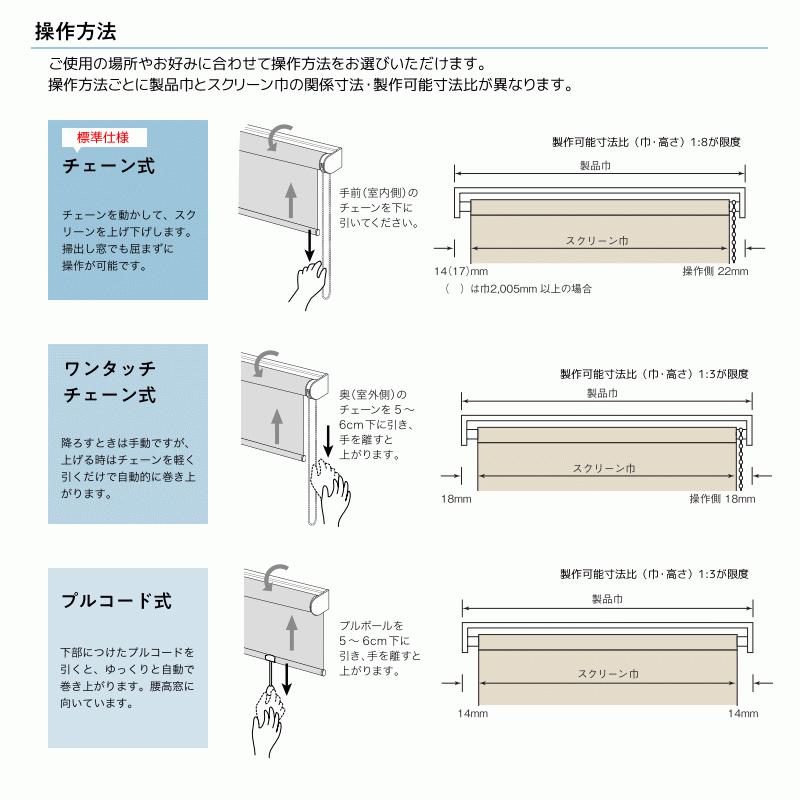 ■ロールスクリーン仕様書(チェーン式/ワンタッチチェーン式/プルコード式)