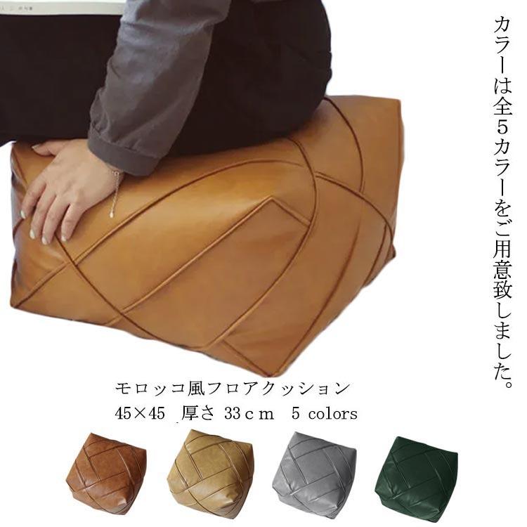 PVCレザー座布団 プフ クッション 革 スツール 45×33 フロアクッション チェア 座 椅子 四角 スクエア クッション 高級感 ナチュラル リ
