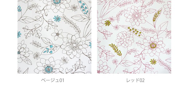 ベージュカラーには青い花や葉っぱが、レッドカラーにはグリーンがアクセントとして全体を引き立てます。