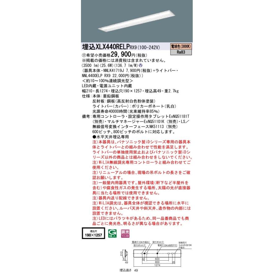 【法人様限定】パナソニック iDシリーズ XLX440RELPRX9 LEDベースライト 埋込型 40形 電球色 WiLIA無線調光