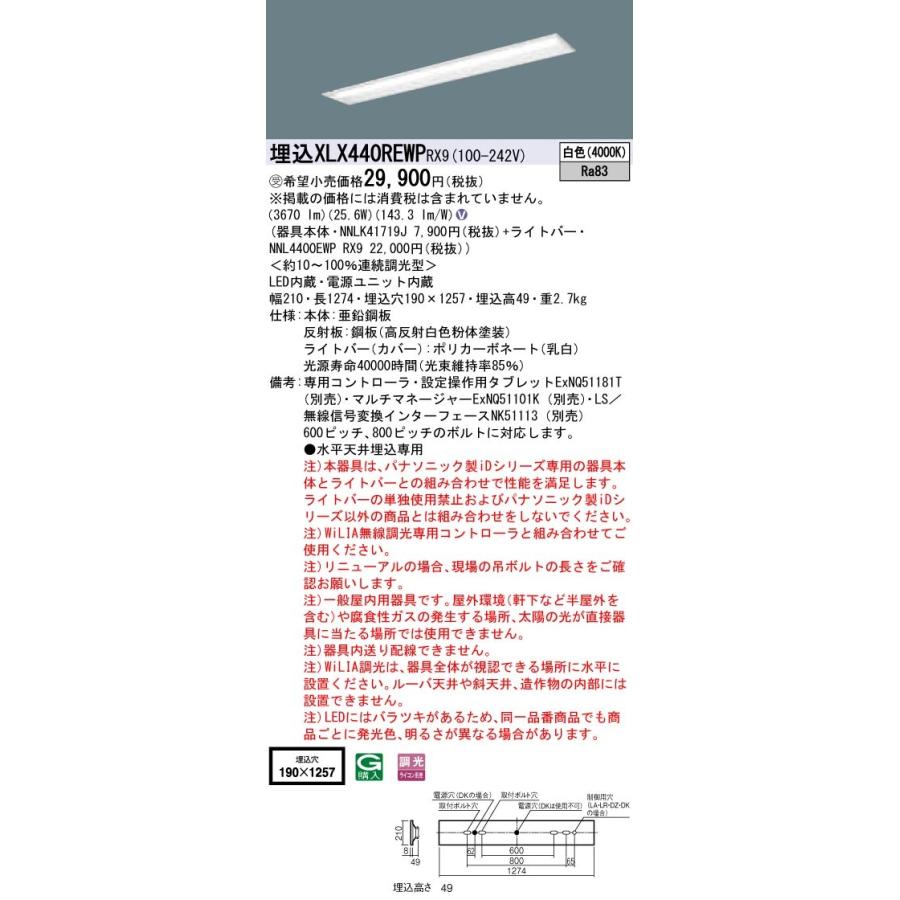 【法人様限定】パナソニック iDシリーズ XLX440REWPRX9 LEDベースライト 埋込型 40形 白色 WiLIA無線調光【受注生産品】