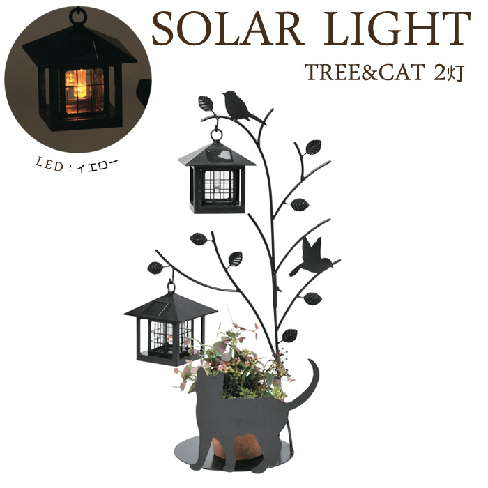 | シルエットソーラー Tree&Cat 木とネコ 1灯タイプ 幅38.5×奥行24×高さ44.7cm 1台 | シルエットソーラー Tree&Cat 木とネコ 2灯タイプ 幅40×奥行23.5×高さ65.4cm 1台 |