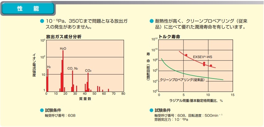 EXSEV軸受シリーズは、一般の軸受をそのまま使用することが困難な用途に対応するために、通常とは異なる軸受材・潤滑剤を用いた軸受シリーズです。