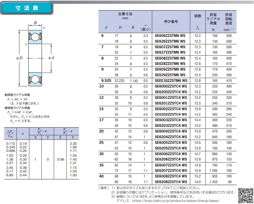 (在庫あり) JTEKT(KOYO) ベアリング SE6005ZZSTC4WS EXSEV 真空 高温 耐熱 耐過重 WSベアリング 内径25 外径47 幅12