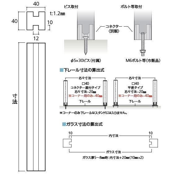 仕様ガラス厚5〜8mm用寸法:角40×400mm材質:真鍮仕上:クローム※画像の商品カラーはイメージです。※メーカーからの取寄せ商品のため、ご注文後のキャンセル、返品、交換はできません。"} ガラス厚5〜8mm用