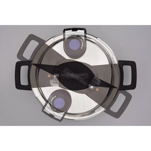 ・ 4.0L H-5388・・Size:4.0LPatternName:単品・サイズ(約):幅350×奥行260×高さ205mm・本体重量(約):3.0kg・材質:本体/ステンレス鋼、はり底/アルミニウム合金・ステンレス鋼、ふた/ステンレス鋼、取っ手/フェノール樹脂(耐熱温度150度)・原産国:中国・底の厚さ:4.5mm説明 商品紹介 2段階の圧力調整ダイヤル付です。保温性・熱伝導性に優れた3層構造です。 より ●ワンタッチレバーで開閉が簡単 ●360度どの方向からでも蓋が閉められる ●調理に合わせて2段階の圧力が選べる調整ダイヤル付。魚や野菜など煮崩れしやすい食材は115度以下で調理する60kpaの低圧で、肉の塊など芯まで熱の通りづらい食材には115度~121度で調理する100kPaの高圧に調整可能 ●ガス火はもちろん、200VのIHクッキングヒーターやハロゲンヒーターなどオール熱源に対応 ●熱伝導の良いアルミニウムをステンレス鋼ではさんだ厚底の3層構造で、こげつきにくく、保温力に優れている ●お米が約7合炊けるサイズ ●(財)製品安全協会によるSGマーク認定商品