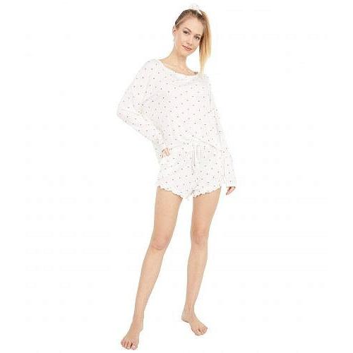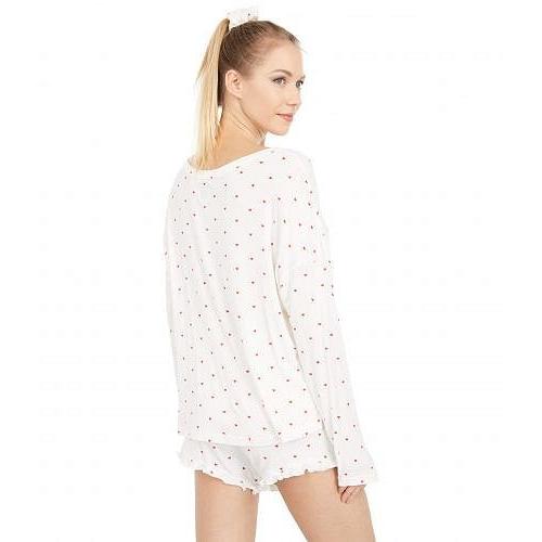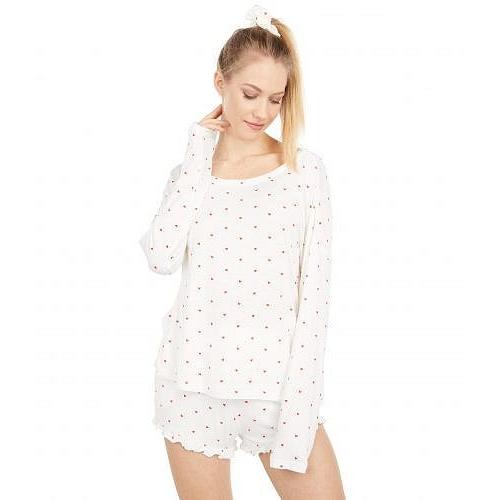 Plush プラッシュ レディース 女性用 ファッション パジャマ 寝巻き Ultra Soft Jersey Pajama + Scrunchie Set - White/Red