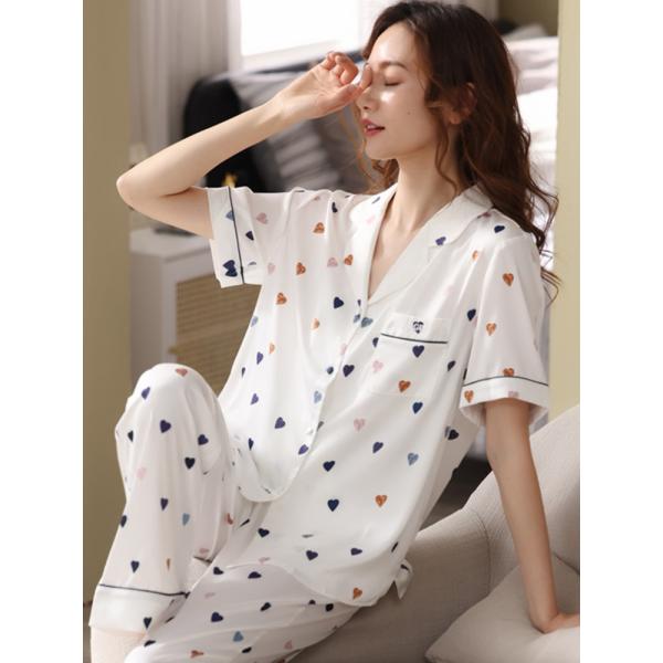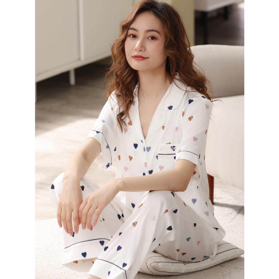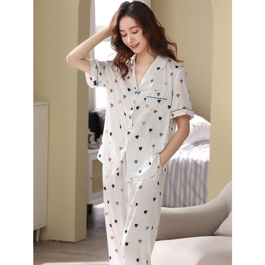 スーツ 部屋着 パジャマ 半袖 シルク サテン レディース