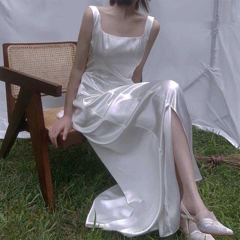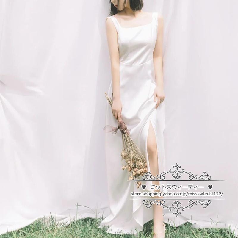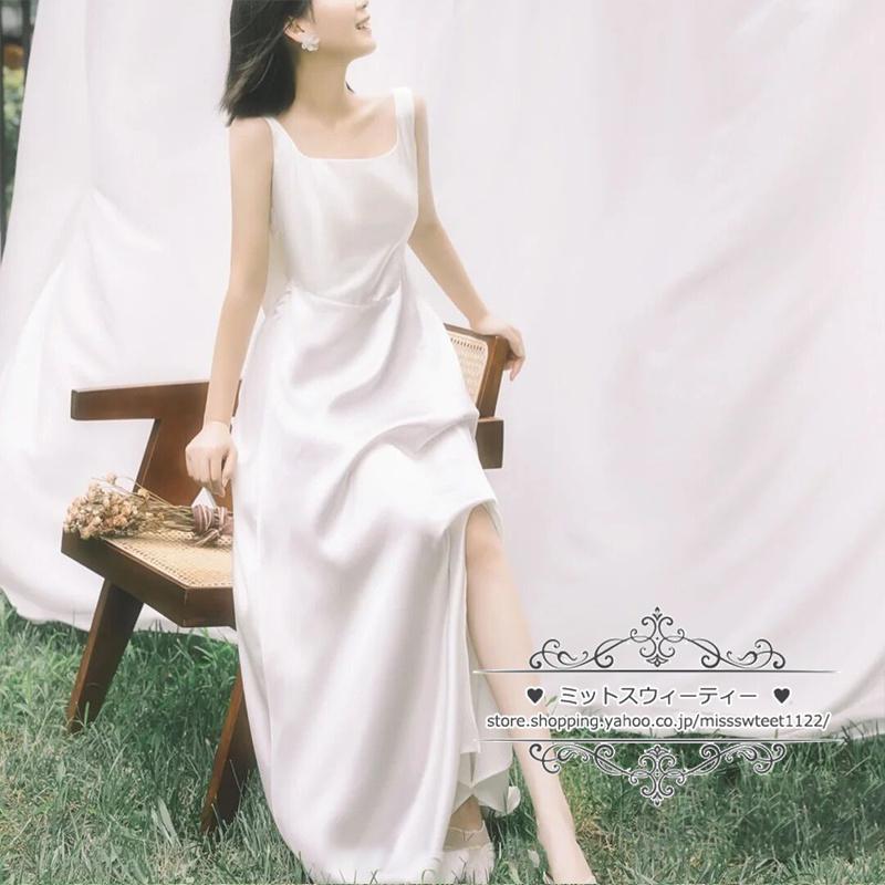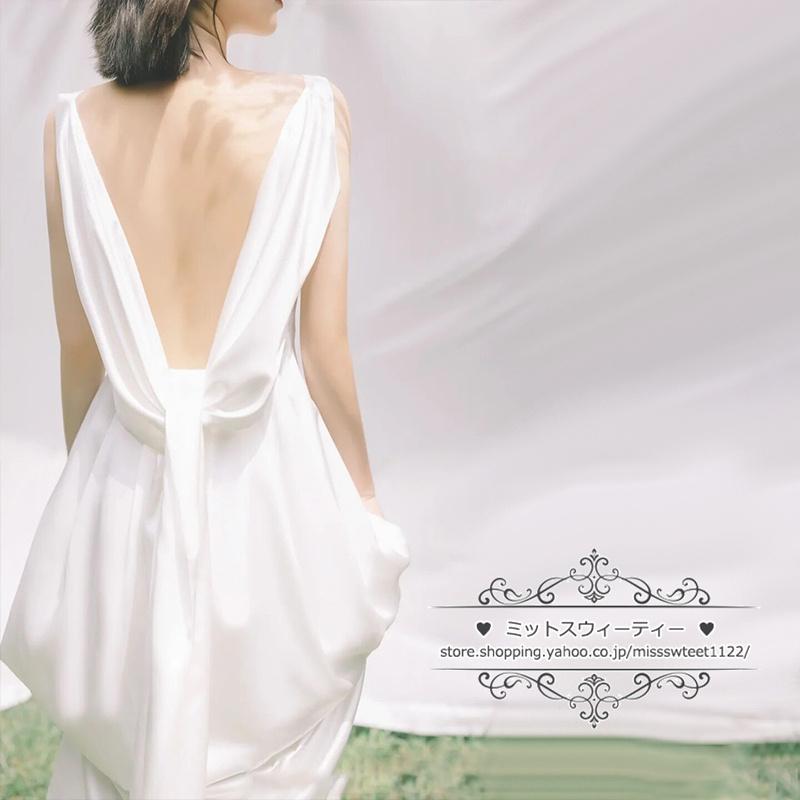 ウェディングドレス 二次会 結婚式 ブライダル サテン 袖なし 前撮り 海外挙式 花嫁 リゾートウェディング シンプル ウエディングドレス ガーデンウエディング