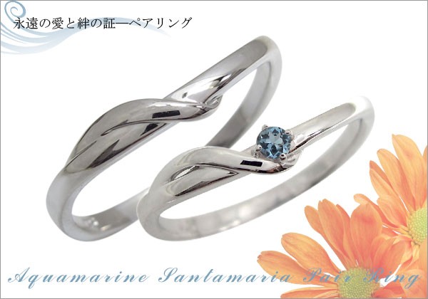 ![]() 3月誕生石アクアマリンサンタマリアを一粒使用したシルバー製の、 シンプルデザインのペアリングです。 マリッジリング(結婚指輪)としてもお勧めの商品です。