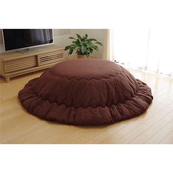 こたつ布団 〔単品 円形 つむぎ調 ブラウン 約225cm〕 厚掛けタイプ 洗える 表地:綿100% 〔リビング ダイニング〕〔〕