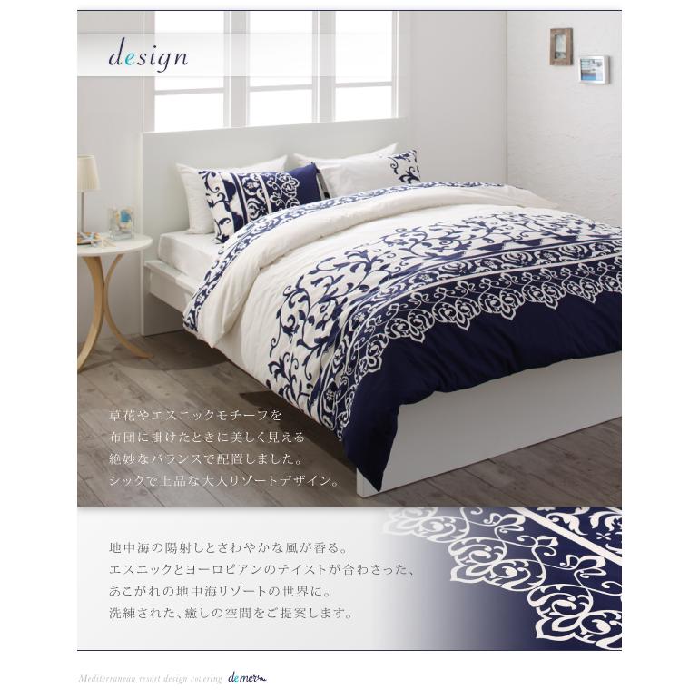 地中海リゾートデザイン カバーリング de mer 和式用3点セット 掛け布団カバー+和式用フィットシーツ+ピローケース セミダブル ナイトブルー