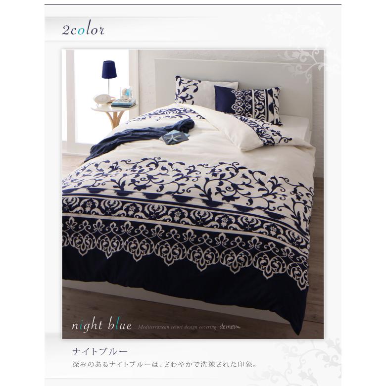 地中海リゾートデザイン カバーリング【de mer】ドゥメール 和式用3点セット(掛け布団カバー+和式用フィットシーツ+ピローケース) セミダブル ナイトブルー 敷き布団カバー 枕カバー"}