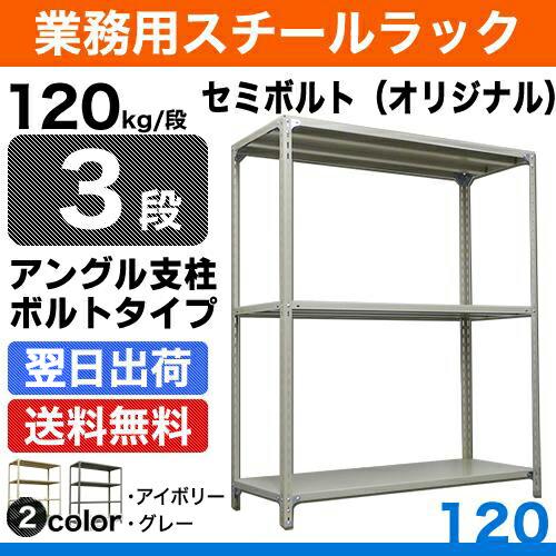 スチール棚 幅120×奥行30×高さ120cm 3段 単体 120kg/段 セミボルト(オリジナル) 重量:20kg