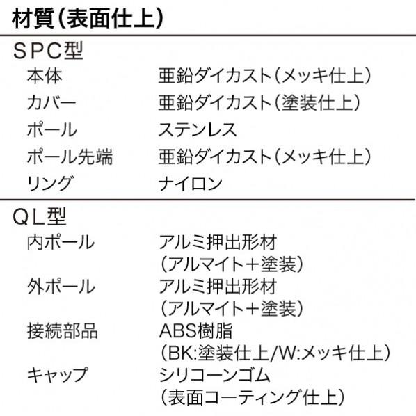 | サイズ | ●SPC-BK:本体ベースφ64 ポール全長460-550-640mm ●QL-23-BK:製品全長1450〜2340mm | カラー | 黒色 |