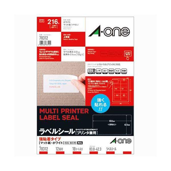 (まとめ) エーワン ラベルシール[プリンタ兼用]強粘着タイプ マット紙・ホワイト A4 12面 83.8×42.3mm 四辺余白付 角丸 783121冊(18シート) 〔×10セット〕