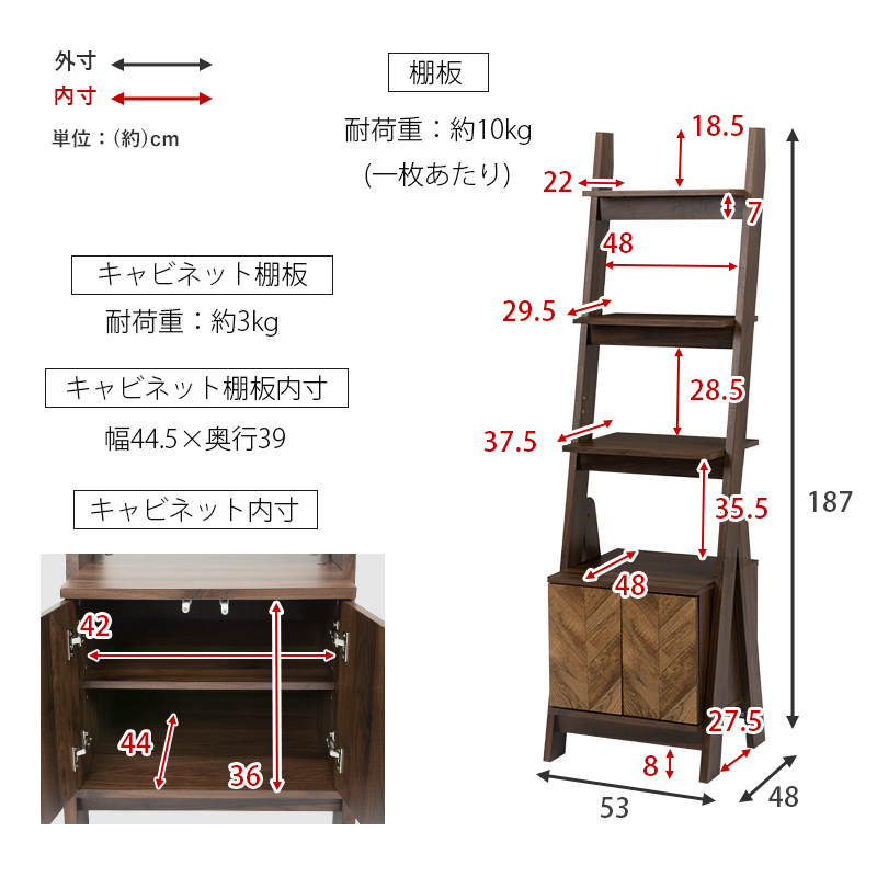 【サイズ】:(約)幅53×奥行48×高さ187cm【素材】:主材:プリント紙化粧パーティクルボード【備考】:■組立式"}