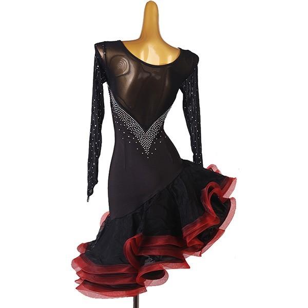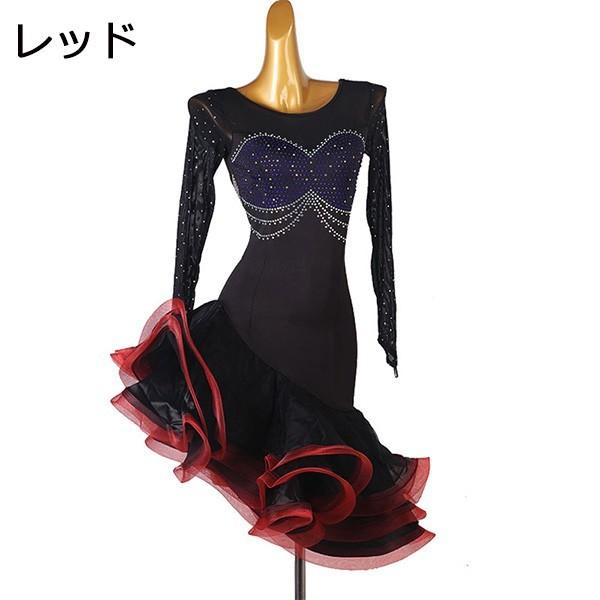 社交ダンス ラテンドレス ラテンダンス衣装 スカート ピンク 赤 黒 長袖 ラテン衣装 ワンピース 練習服 レッスン着 ダンスウェア