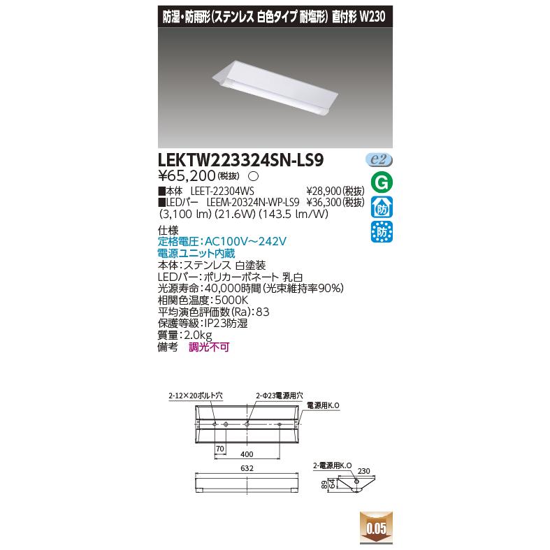【法人様限定】東芝 LEKTW223324SN-LS9 TENQOO直付20形W230SUS【LEET-22304WS + LEEM-20324N-WP-LS9】
