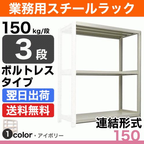 スチール棚 幅90×奥行45×高さ180cm 3段 連結 150kg/段 ボルトレス 重量:22kg