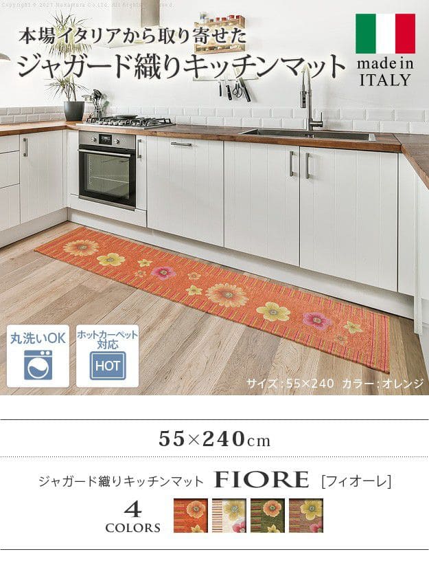 【カラーバリエーション】オレンジ・ベージュ・グリーン・ブラウン【仕様】綿35%・ポリエステル30%・アクリル25%・レーヨン5%・その他5%【サイズ】240x55cm厚さ:約0.3cm重量:約1.1kg▼茶色 緑 イタリア カラフル 花柄 柄物 約 45cm 240cm 幅45 幅240 長方形 ロングマット クッションフロア クッションマット クッションタイプ ミニラグマット 台所マット キッチンラグ オシャレ カラー 材質 サイズ 北 南 東 西 安い 業務用 北欧風 北欧スタイル 北欧モダン 北欧柄 西海岸 アジアン ナチュラル ハワイ ハワイアン 和 和風 和風モダン 個性的 薄い 薄手 小さめ ミニ 大きい 大きめ ワイド 幅広 ロングサイズ ロング 長い 長め 短め スリム 隙間 高さ 防音 滑らない ふける 水拭き ふわふわ ダイニング 台所 キッチン 格安 激安 やすい お洒落 オシャレ おしゃれな 可愛い かわいい カワイイ インテリア 新品 高級感 送料込み 送料無料 単身用 新居 業務用 事務所 家庭用 新生活 仕事用 生活 頑丈 丈夫 一人暮らし用 スリムタイプ スリム型 省スペース コンパクト 夏用 夏 冬用 冬 秋 春 ペット 廊下マット 絨毯 ラグ ラグマット カーペット ▲
