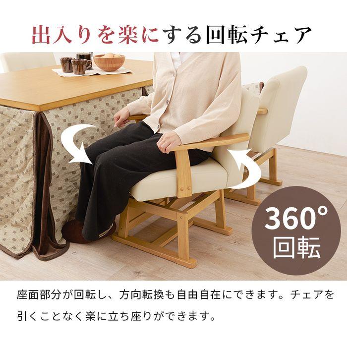 高さ調節が可能な回転式ダイニングチェア。座面下に前板があるので、コタツ庫内の熱が逃げにくいです。SEARCH WORD: